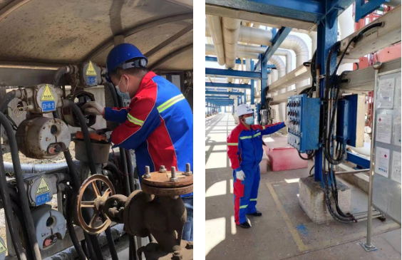 為切實做好各類事故防范,石化碼頭加強對重點區(qū)域、重點部位的檢查,逐一核查所有泊位的水管線、閥門的排水,并全部采取保溫措施,杜絕出現(xiàn)“跑、冒、滴、漏”現(xiàn)象,確保極寒天氣下工藝管線保持正常運行狀態(tài)。為確保在突發(fā)情況下輸油臂能夠及時收回、正常鎖定,石化碼頭各泊位工作人員對輸油臂內(nèi)臂、外臂鎖定裝置和固定繩進行了專項檢查維護,并在潤滑保養(yǎng)項目中對鎖定裝置進行保養(yǎng)維護,保障輸油臂在冬季正常作業(yè)。同時,工作人員還對設備高處防風固定裝置進行檢查,全面做好對罩棚、施工擋板、腳手架以及爬梯等其他高空設施的加固工作。