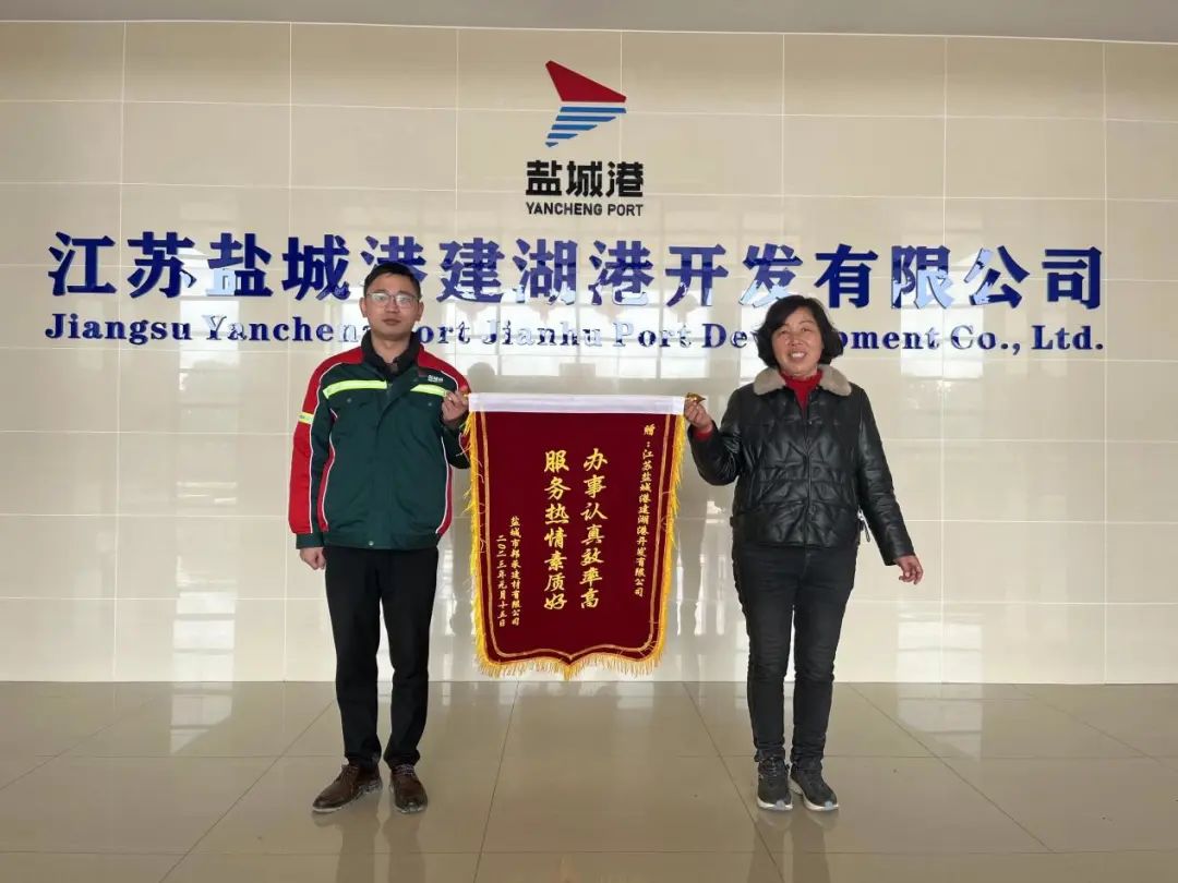 近日,鹽城港建湖港區(qū)收到來(lái)自合作客戶贈(zèng)予的一面印有“辦事認(rèn)真效率高,服務(wù)熱情素質(zhì)好”的錦旗,對(duì)建湖港區(qū)在業(yè)務(wù)開展過(guò)程中所提供的優(yōu)質(zhì)服務(wù)表示感謝。
