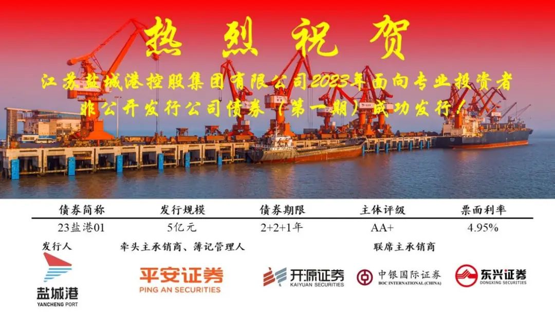 2月23日,鹽城港集團(tuán)2023年度第一期私募公司債成功發(fā)行,金額5億元,發(fā)行利率4.95%。本期私募公司債為集團(tuán)本部私募產(chǎn)品首次公開市場(chǎng)亮相,進(jìn)一步提振了金融機(jī)構(gòu)對(duì)鹽城港集團(tuán)發(fā)展的信心,鞏固了集團(tuán)在資本市場(chǎng)的口碑與信譽(yù)。