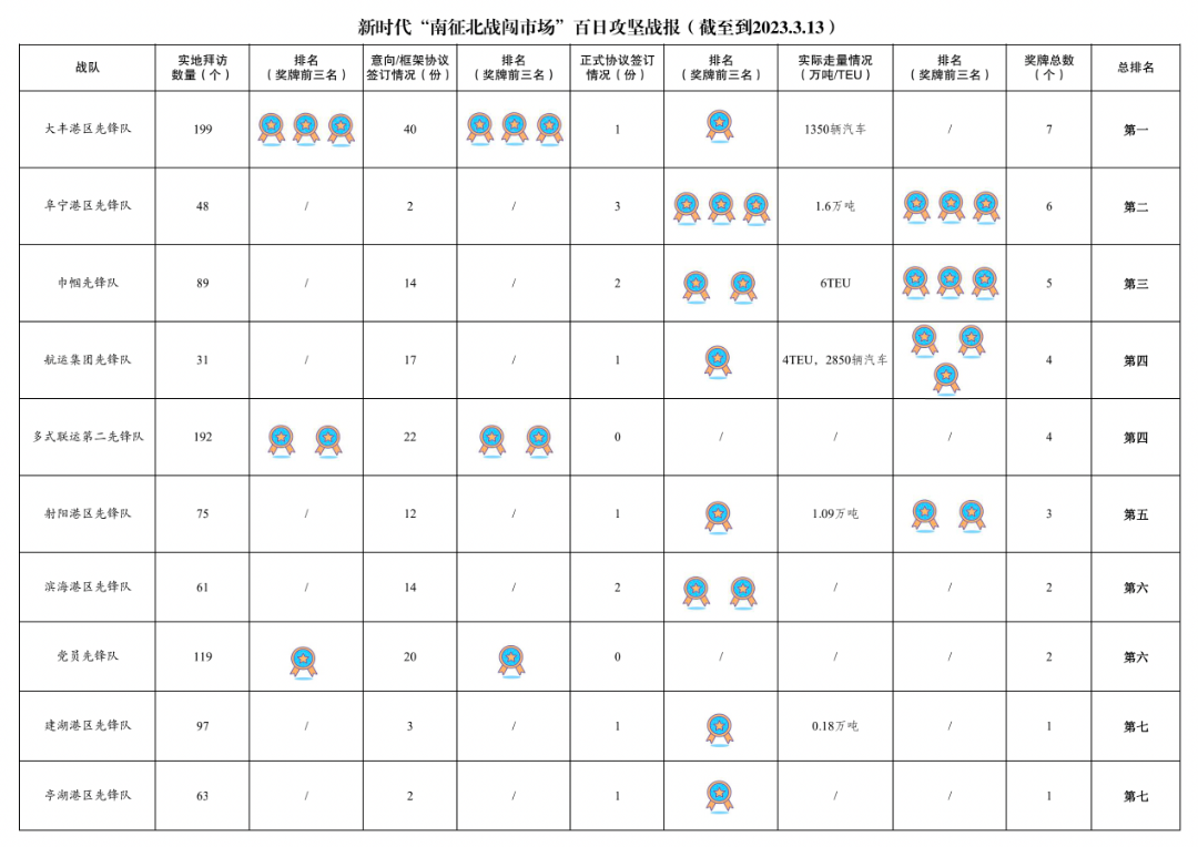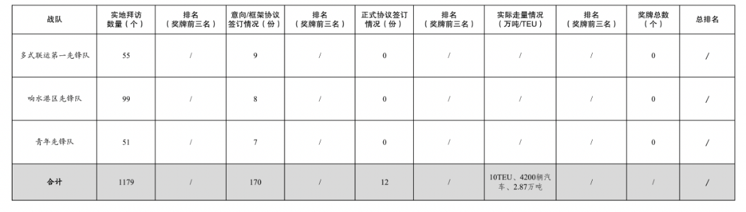 活動(dòng)開(kāi)展以來(lái),累計(jì)拜訪客戶數(shù)量1179家,簽訂意向/框架協(xié)議數(shù)量170份,簽訂正式協(xié)議12份,實(shí)際走量10TEU、4200輛汽車(chē)、2.87萬(wàn)噸。