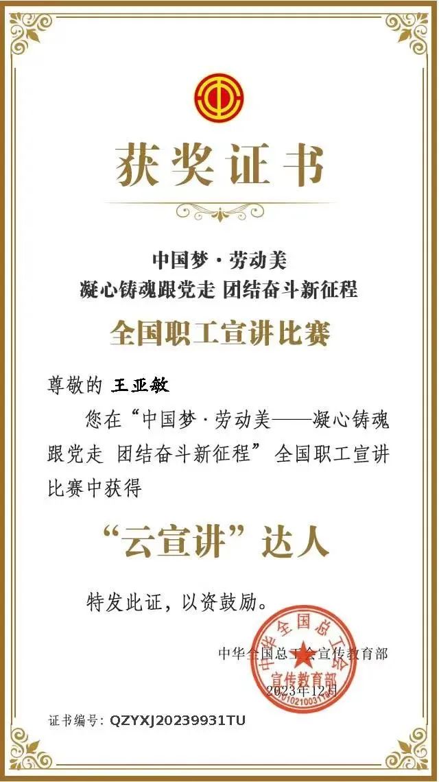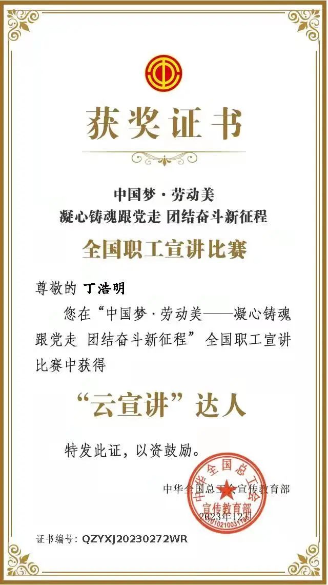 近日,中華全國(guó)總工會(huì)在廣大職工中組織開(kāi)展“中國(guó)夢(mèng)·勞動(dòng)美一凝心鑄魂跟黨走團(tuán)結(jié)奮斗新征程”全國(guó)職工宣講比賽,初賽以線上“云宣講”方式進(jìn)行。集團(tuán)工會(huì)聯(lián)合會(huì)有針對(duì)性地組織廣大職工參賽,迅速組織發(fā)動(dòng)制作短視頻,在鼓勵(lì)廣大職工的同時(shí),重點(diǎn)激勵(lì)具備一定榮譽(yù)基礎(chǔ)、榮獲過(guò)各級(jí)各類勞動(dòng)模范、五一勞動(dòng)獎(jiǎng)?wù)碌葮s譽(yù)稱號(hào)的職工,充分發(fā)揮示范帶頭作用。其中,集團(tuán)大豐港區(qū)成品油水上加油站王亞敏和航運(yùn)集團(tuán)上港國(guó)際公司丁浩明同志榮獲中華全國(guó)總工會(huì)宣傳教育部頒發(fā)的“云宣講”達(dá)人稱號(hào)。