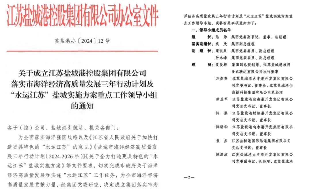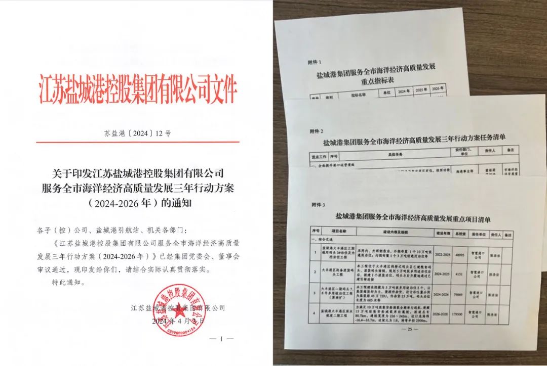 2月3日,集團(tuán)發(fā)布了《關(guān)于成立江蘇鹽城港控股集團(tuán)有限公司落實(shí)市海洋經(jīng)濟(jì)高質(zhì)量發(fā)展三年行動(dòng)計(jì)劃及“水運(yùn)江蘇”鹽城實(shí)施方案重點(diǎn)工作領(lǐng)導(dǎo)小組的通知》,領(lǐng)導(dǎo)小組下設(shè)一辦兩組,明確各項(xiàng)工作責(zé)任單位和責(zé)任人。3月2日,工作領(lǐng)導(dǎo)小組召開(kāi)第一次調(diào)度會(huì)議,對(duì)各項(xiàng)工作進(jìn)行了系統(tǒng)部署,深入推進(jìn)海洋經(jīng)濟(jì)高質(zhì)量發(fā)展和水運(yùn)江蘇重點(diǎn)工作。