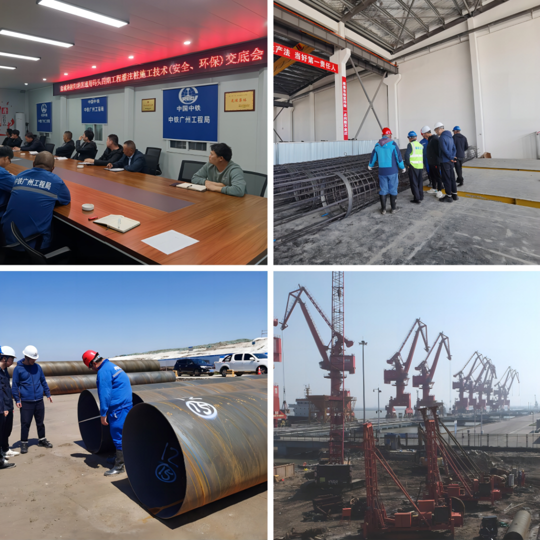 灌注樁作為項(xiàng)目關(guān)鍵施工工序,射陽(yáng)港區(qū)和項(xiàng)目咨詢公司結(jié)合工程實(shí)際情況,精心組織、周密部署,在施工準(zhǔn)備階段注重與施工單位的溝通協(xié)調(diào),加強(qiáng)質(zhì)量安全監(jiān)督和管理;通過召開專題會(huì)議優(yōu)化施工方案、調(diào)整施工部署,與各參建單位做好機(jī)械設(shè)備驗(yàn)收、安全管理等工作,全力保障灌注樁施工平穩(wěn)有序進(jìn)行。