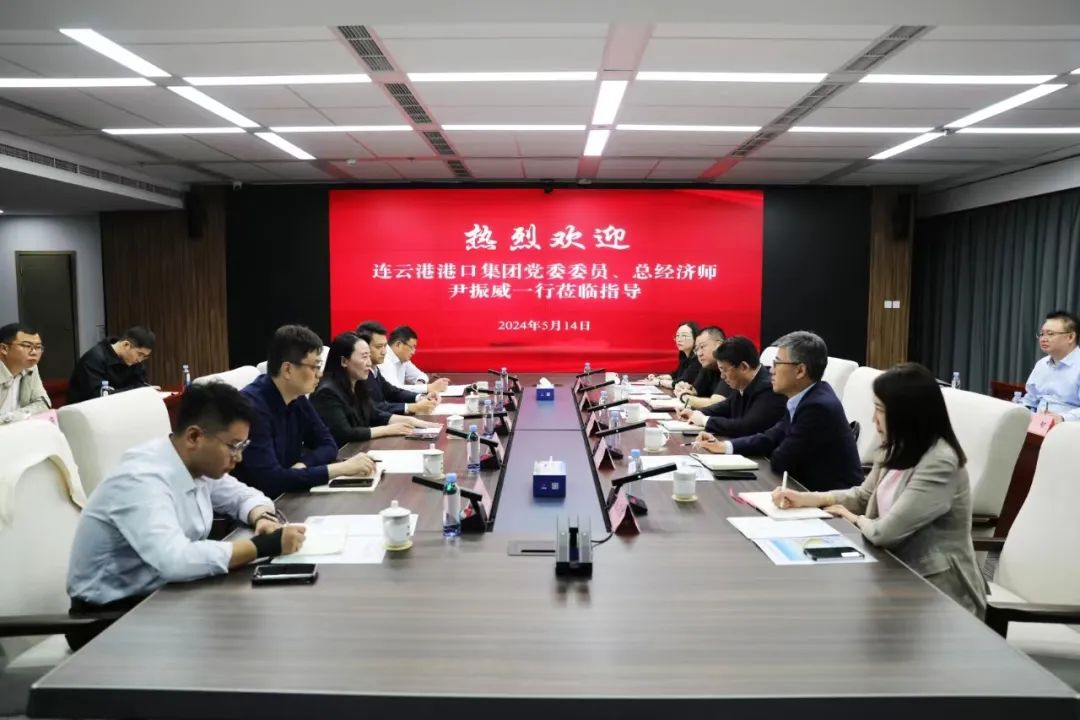 5月14日,連云港港口集團(tuán)黨委委員、總經(jīng)濟(jì)師尹振威率隊(duì)拜訪我集團(tuán),就沿海支線、海河聯(lián)運(yùn)等業(yè)務(wù)合作事項(xiàng)進(jìn)行交流。集團(tuán)副總經(jīng)理袁欣接待尹振威一行。
