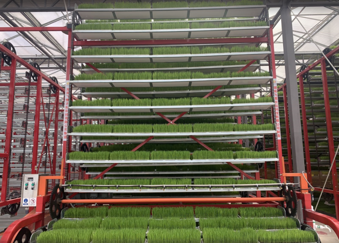 在智能化育秧生產(chǎn)車間,16臺(tái)嶄新的大型智能化育秧機(jī)正在開足馬力,抓緊時(shí)間培育今年首批常規(guī)稻秧苗,層層疊疊的育秧盤內(nèi),綠油油的秧苗正茁壯成長(zhǎng)。隨著齒輪轉(zhuǎn)動(dòng),育秧盤隨著自動(dòng)滑軌上下循環(huán),育秧床上裝有光照傳感器、二氧化碳傳感器等設(shè)備,可實(shí)現(xiàn)調(diào)溫、調(diào)濕、補(bǔ)水、增光完全自動(dòng)化、智能化,一次性可育苗600多畝。這種培育方式,不僅能節(jié)約土地、種子、肥料和人工成本,還可縮短育秧周期,保證預(yù)期移栽時(shí)間,為后期機(jī)械化插秧和田間管理奠定堅(jiān)實(shí)基礎(chǔ),跑出水稻提質(zhì)增產(chǎn)“加速度”。