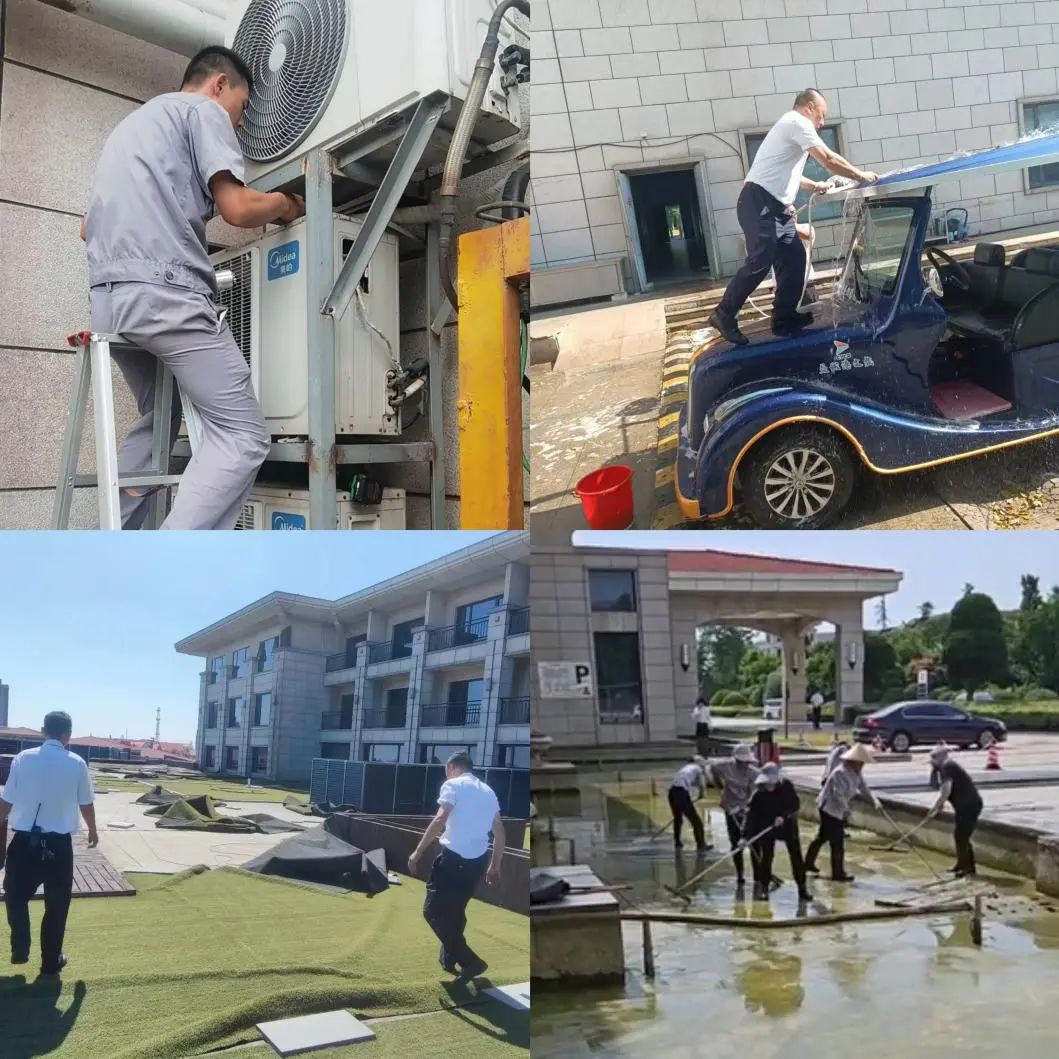 高溫?fù)舨豢妍}城港人對(duì)事業(yè)的熱愛、對(duì)崗位的忠誠(chéng)。頂著烈日的忙碌身影,鋪被風(fēng)吹散的草坪、清理遍布綠色苔蘚的水池、清洗觀光車、維修設(shè)備.....,他們用強(qiáng)烈的責(zé)任心與可靠的專業(yè)技能,讓客戶用得放心。