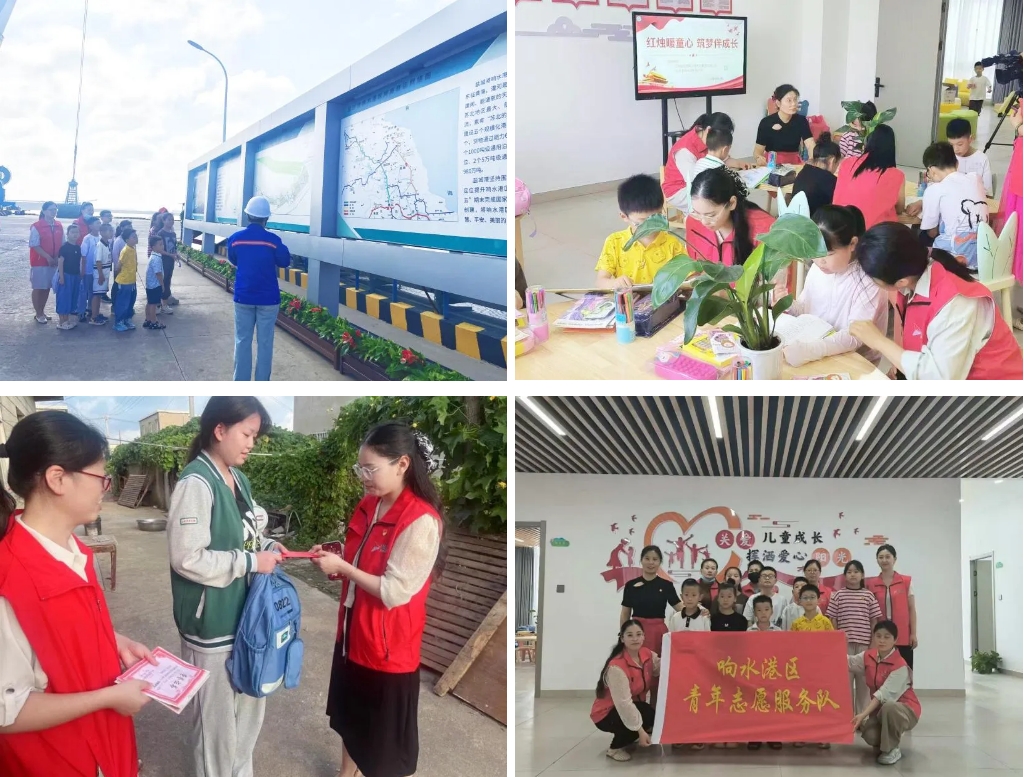 活動(dòng)當(dāng)日,兒童們?cè)谥驹刚叩呐阕o(hù)下,乘坐中巴車來到鹽城港響水港區(qū)中心碼頭現(xiàn)場(chǎng)參觀,看到高聳的大吊車和船舶,孩子們興奮不已,不停地向港區(qū)工作人員詢問問題。隨后響水港區(qū)青年志愿者和“愛心媽媽團(tuán)”來到響水縣陳家港鎮(zhèn)未成年人保護(hù)工作站,詳細(xì)了解未成年保護(hù)工作站的運(yùn)行情況,詢問兒童們學(xué)習(xí)及生活情況,并為孩子們贈(zèng)送了書包、學(xué)習(xí)用品和助學(xué)慰問金。之后與孩子們一起閱讀課外書籍,幫助進(jìn)行心理疏導(dǎo)與學(xué)習(xí)鼓勵(lì)。最后志愿者上門走訪一名品學(xué)兼優(yōu)的高三學(xué)生,將助學(xué)禮包和慰問金送到該同學(xué)的手中,勉勵(lì)她認(rèn)真學(xué)習(xí),不要被眼前的困難所嚇倒,期待她明年高考好成績(jī)。