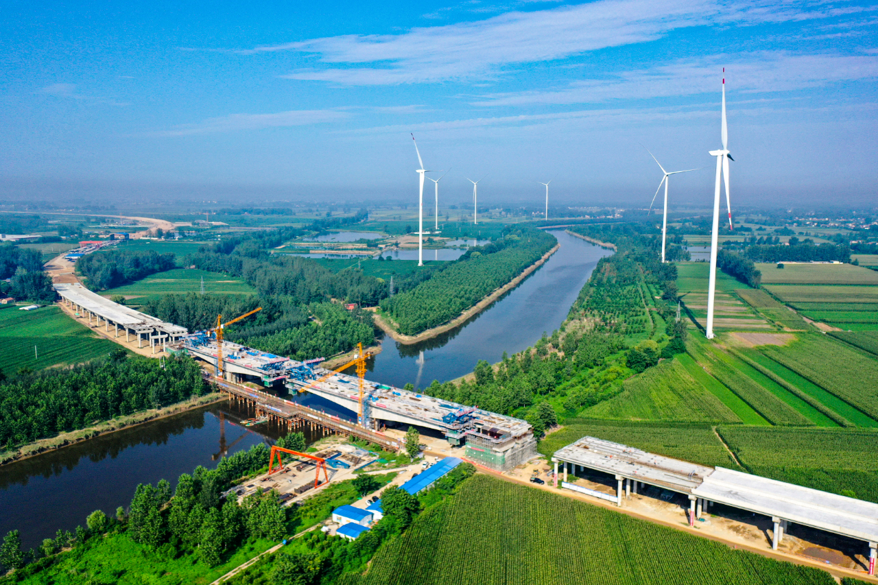 ▲ 淮阜高速淮北段項(xiàng)目沱河特大橋施工正酣