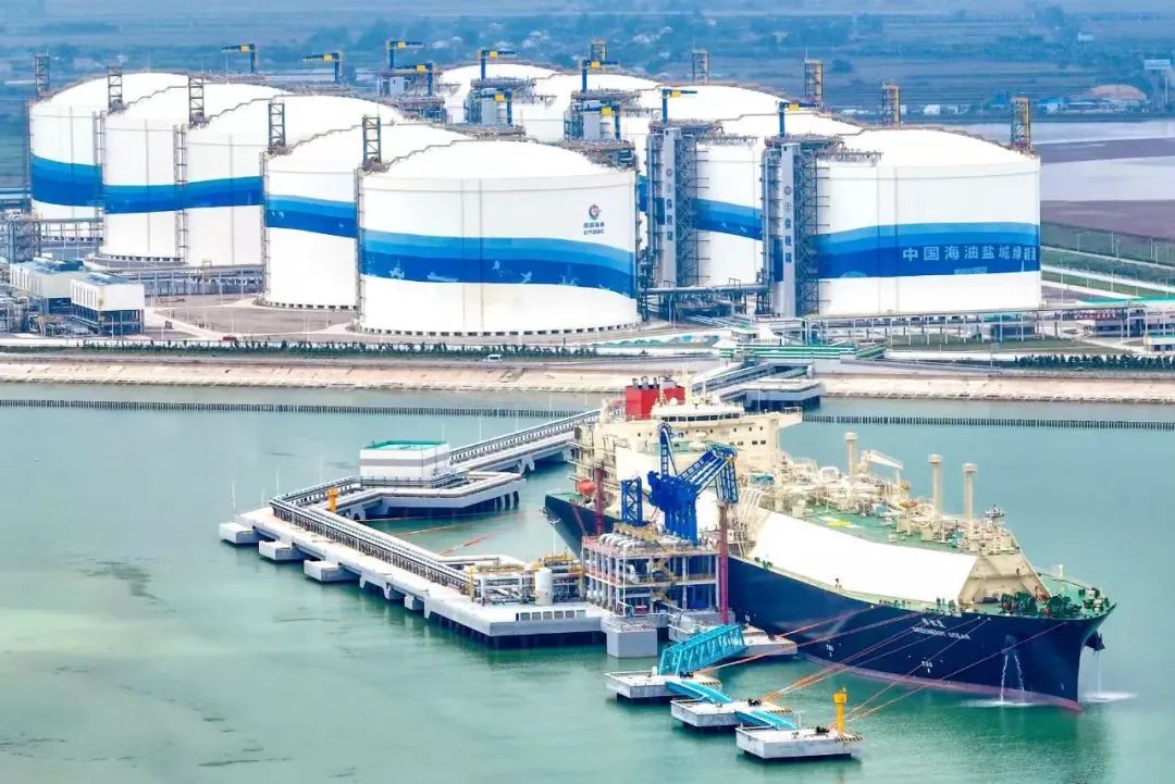 ▲中海油鹽城“綠能港”建成全國規(guī)模最大的液化天然氣儲備基地。