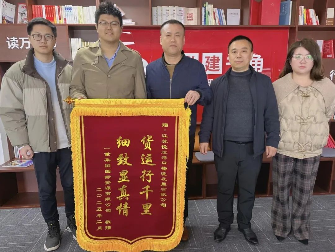 近日,一重集團(tuán)國際資源有限公司為江蘇悅達(dá)港口物流發(fā)展有限公司送上一面錦旗,贈語“貨運(yùn)行千里,細(xì)致顯真情”。這簡短的話語,飽含著客戶沉甸甸的信任與感激。