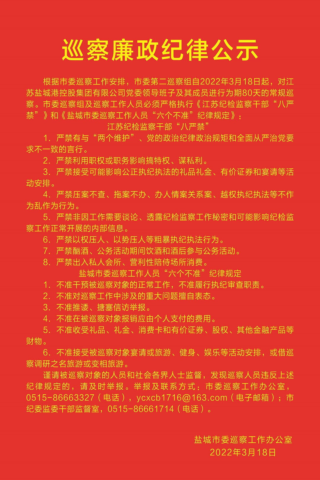 巡察廉政紀律公示