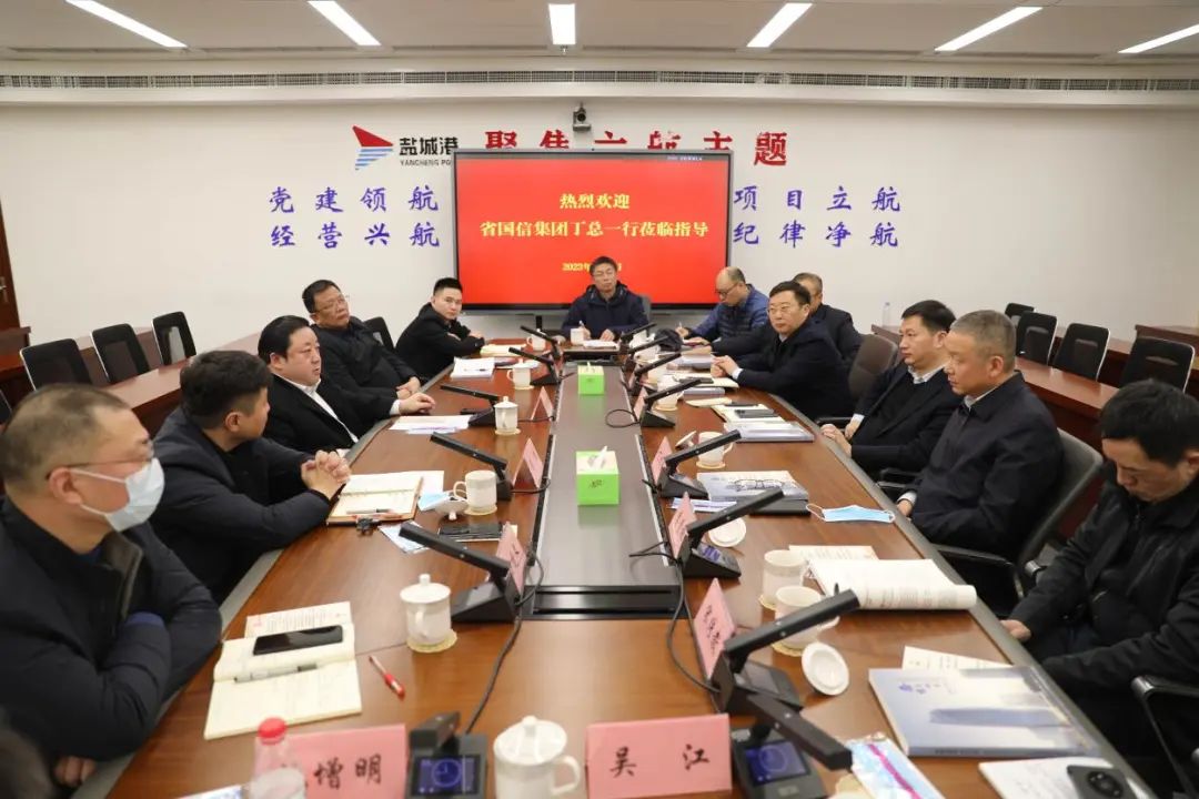 周正雄對丁旭春一行的到訪表示歡迎,并對國信集團在鹽城港集團發(fā)展過程中給予的關(guān)心和支持表示感謝,并介紹了鹽城港相關(guān)情況。他說,2020年,市委、市政府審時度勢,將全市海港和內(nèi)河港區(qū)融為一體,按照規(guī)劃、投資、建設(shè)、管理、運營一體化要求,實現(xiàn)了海河聯(lián)運一體化發(fā)展格局,為全市港航事業(yè)更優(yōu)質(zhì)、更高質(zhì)量發(fā)展奠定堅實基礎(chǔ)。集團成立以來,緊抓發(fā)展機遇,于2021年首次躋身全國億噸大港行列,2022年貨物吞吐量增幅及集裝箱量增幅分別位列全國54個沿海港口的第一和第二位,進一步打響了鹽城港的名氣和品牌。與此同時,集團緊抓江蘇沿海發(fā)展等契機,聚焦“十四五”末達到2億噸吞吐量和1.5億噸能級的目標,按照不搞“三無一不”投資的要求,持續(xù)在港口、航道、堆場、倉儲等領(lǐng)域加大投資,系統(tǒng)性推進實施港口基礎(chǔ)設(shè)施建設(shè),為集團實現(xiàn)高質(zhì)量發(fā)展夯實基礎(chǔ)。省國信集團作為江蘇省內(nèi)大型國有企業(yè),在項目投資和建設(shè)方面具有較強的優(yōu)勢,希望雙方充分發(fā)揮各自資源優(yōu)勢,進一步強化溝通協(xié)作,形成工作合力,加快推進各項目前期手續(xù)辦理,推動鹽城港射陽港區(qū)5萬噸級航道和5萬噸級碼頭等項目落地實施,確保項目盡快開工,早日投產(chǎn)達效。