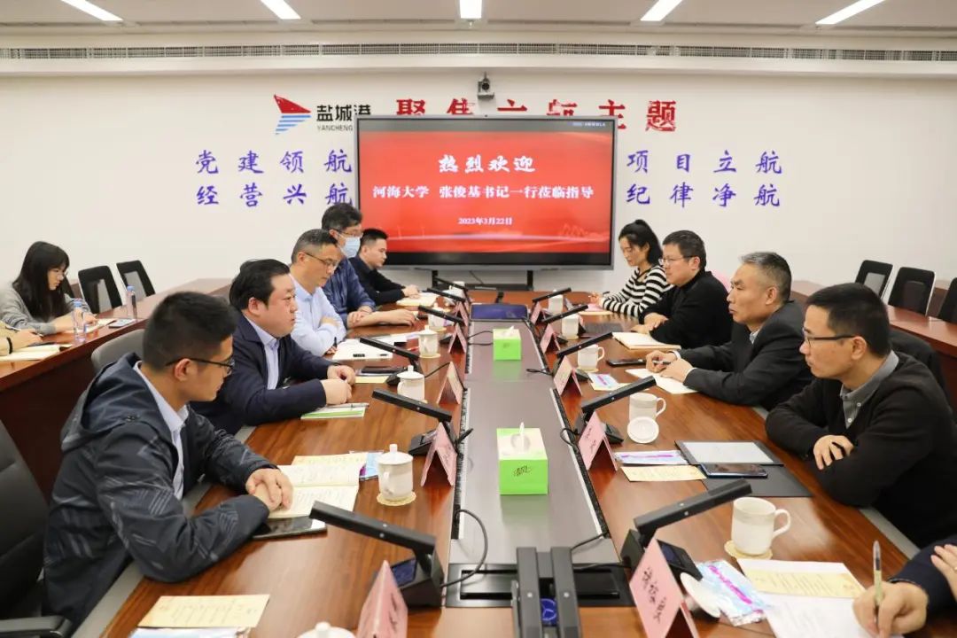 周正雄對張俊基一行的到訪表示歡迎,并對河海大學(xué)在鹽城港發(fā)展過程中給予的關(guān)心、關(guān)注和支持表示感謝,并介紹了鹽城港相關(guān)情況。他說,張俊基書記一行到訪,不僅是積極落實(shí)中央“大興調(diào)查研究之風(fēng)”的具體實(shí)踐,同時(shí)也為鹽城港實(shí)現(xiàn)更高質(zhì)量發(fā)展帶來了有力的理論支撐和智力支持。近年來,隨著江蘇沿海發(fā)展戰(zhàn)略上升為國家戰(zhàn)略,全省沿?;A(chǔ)設(shè)施穩(wěn)步推進(jìn),立體交通初具雛形,為港口的發(fā)展打下了堅(jiān)實(shí)基礎(chǔ)。港口作為沿海發(fā)展的重要增長極,市委、市政府審時(shí)度勢,將全市海港和內(nèi)河港區(qū)融為一體,組建成立鹽城港集團(tuán),對沿海、內(nèi)河岸線資源實(shí)行一體化運(yùn)營,充分利用各港區(qū)的區(qū)位和自然條件優(yōu)勢,形成海河聯(lián)運(yùn)一體化發(fā)展格局,進(jìn)一步實(shí)現(xiàn)港口資源使用效益的最大化。集團(tuán)成立以來,緊抓多重戰(zhàn)略疊加機(jī)遇,不斷整合優(yōu)化內(nèi)外部資源,全力以赴抓好生產(chǎn)經(jīng)營,在2021年首次躋身全國億噸大港行列,2022年位列全國40個(gè)億噸港口的第28位,貨物吞吐量增幅及集裝箱量增幅分別位列全國54個(gè)沿海港口的第一和第二位,進(jìn)一步打響了鹽城港品牌。