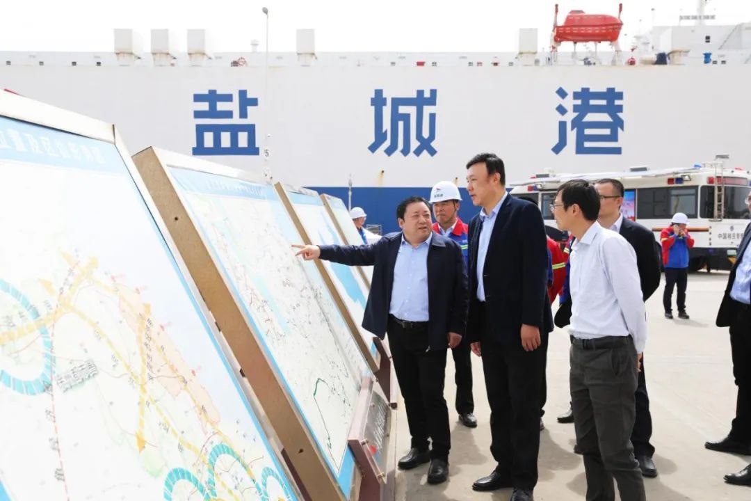 在鹽期間,丁慶領(lǐng)一行實(shí)地調(diào)研了大豐港區(qū)滾裝碼頭,詳細(xì)了解相關(guān)方面情況。