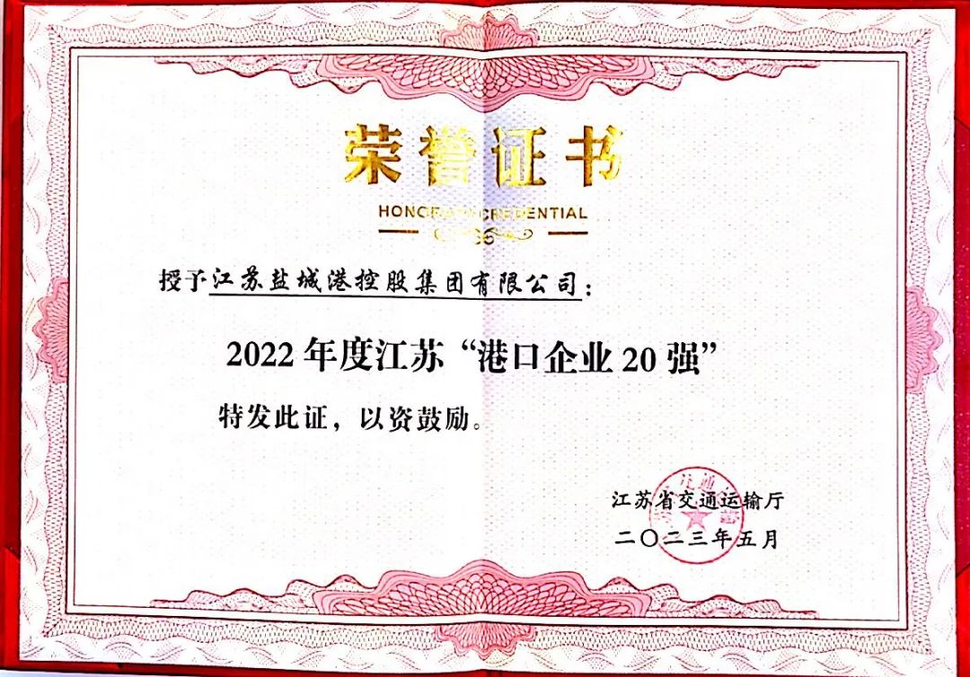 喜報! 鹽城港集團被認定為“2022年度江蘇港口企業(yè)20強”