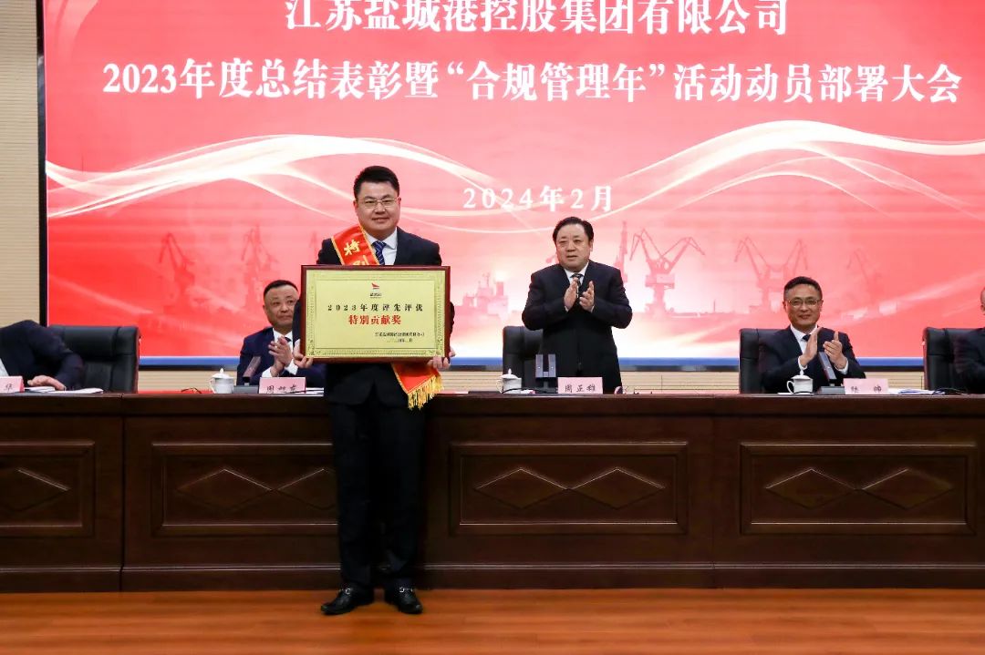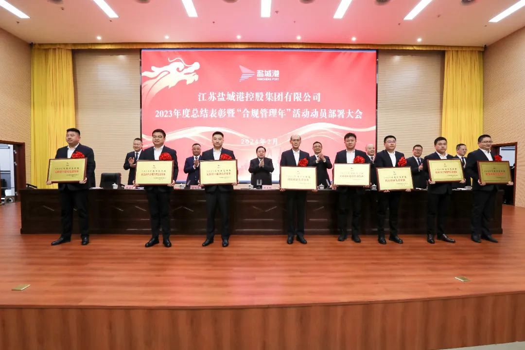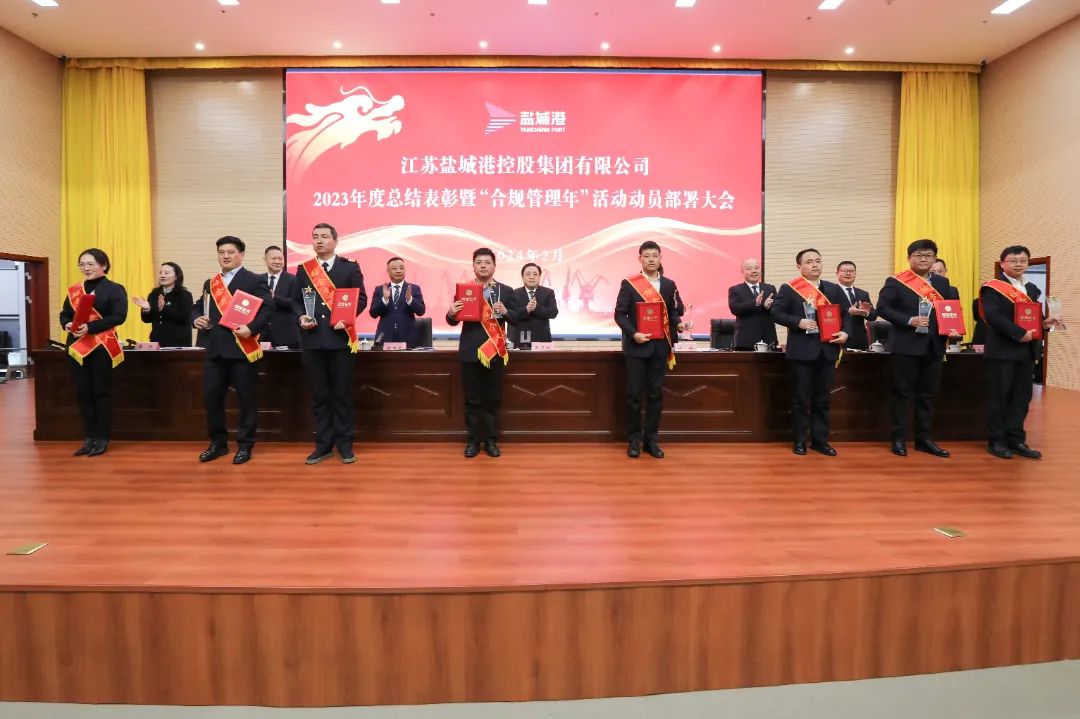 會議宣讀了關(guān)于表彰2023年度先進集體及個人的決定,并為獲獎代表進行頒獎。集團紀委、法務(wù)風(fēng)控部、大豐港集團等6家單位和部門作表態(tài)發(fā)言。