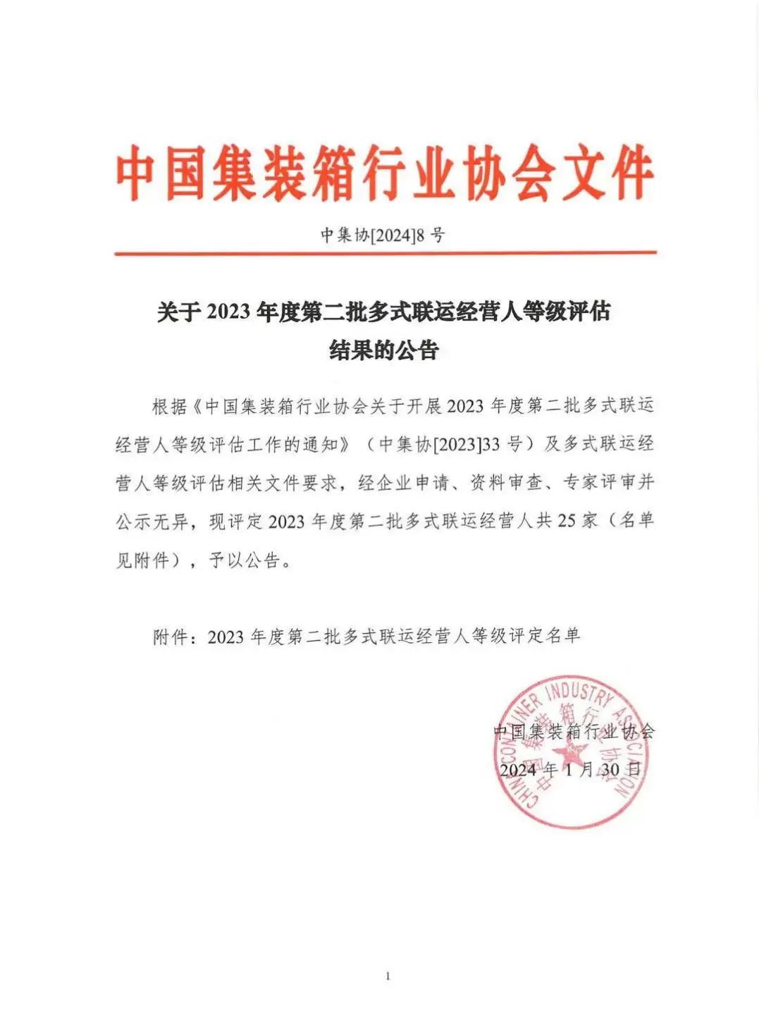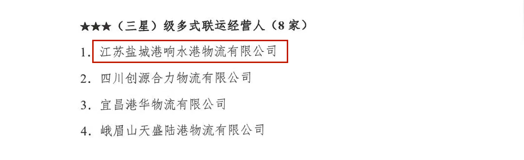 近日,中國集裝箱行業(yè)協(xié)會發(fā)布2023年度第二批多式聯(lián)運(yùn)經(jīng)營人等級評定名單,江蘇鹽城港響水港物流有限公司獲得“三星級多式聯(lián)運(yùn)經(jīng)營人”稱號。
