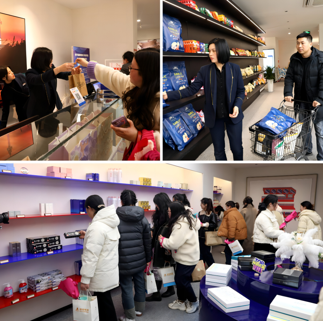 除了美食的誘惑,園區(qū)內的各個特色展銷館也呈現(xiàn)出一派熱鬧景象。結合女性消費習慣,各展銷館精心策劃了婦女節(jié)禮包和促銷活動,琳瑯滿目的高檔化妝品、法國紅酒、香水等商品,讓游客們流連忘返。一位滿載而歸的顧客興奮地分享道:“這里的商品真的是物超所值,無論是自用還是送人,都是好選擇!”