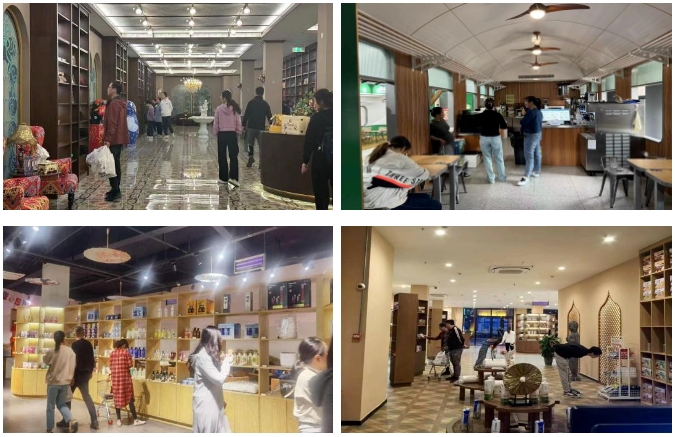 園區(qū)內(nèi)多元業(yè)態(tài)有機(jī)融合,購物、文化展示、休閑娛樂等服務(wù)一應(yīng)俱全,滿足了不同游客的個性化需求。特別是以國內(nèi)外特色為主題的展銷館,如俄羅斯館、大洋洲館、歐洲館等,讓游客領(lǐng)略各地文化精粹,輕松實(shí)現(xiàn)全球購。同時,港泊面館、港泊雅苑、港泊韓膳閣、港泊中歐班列體驗(yàn)館和港泊韓式風(fēng)味體驗(yàn)店等特色餐飲也為游客提供了地道美食,備受游客青睞。