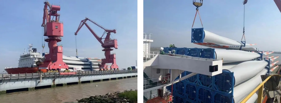 聚力挖潛增效,擦亮品質“新名片”。為確保葉片裝船作業(yè)全過程無“門檻”,碼頭現(xiàn)場的技術團隊根據(jù)吊裝作業(yè)過程中迎風面大、堆垛層碼、固定扣點等重要環(huán)節(jié),不斷探索出立面搖擺調角、輔機增摩對位、對角耗能固定等裝船新工藝。同時,在吊裝過程中實時監(jiān)控港口風力等級,嚴格控制人車站位、起吊速度,并配備應急救援小組,確保整個裝船過程安全高效。