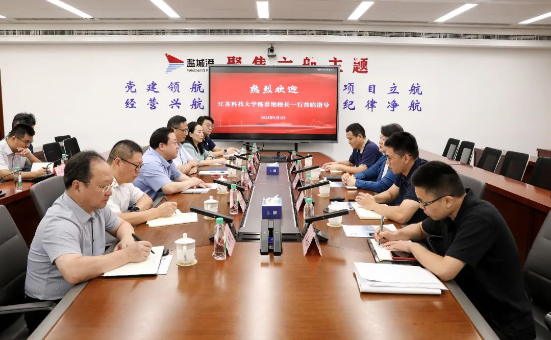 周正雄對(duì)嵇春艷一行的到來表示歡迎,對(duì)江蘇科技大學(xué)在鹽城港發(fā)展過程中給予的關(guān)心和支持表示感謝,并介紹了鹽城港相關(guān)情況。他說,由于地理環(huán)境的特殊性,鹽城港長年面臨著復(fù)雜的水文地質(zhì)條件,一定程度上限制了港口生產(chǎn)能級(jí)的提升。面對(duì)宏觀形勢、吞吐能級(jí)、新質(zhì)生產(chǎn)力等“發(fā)展拐點(diǎn)”,集團(tuán)積極組織開展航道清淤、軟基處理、泥沙利用、極端天氣應(yīng)對(duì)等課題研究,希望通過“揭榜掛帥”的形式,積極聯(lián)合高校及單位共同研究解決路徑,著力破除制約港口高質(zhì)量發(fā)展的不利因素,進(jìn)而有效降低運(yùn)營維護(hù)成本,實(shí)現(xiàn)效益提升。希望江蘇科技大學(xué)一如既往地關(guān)心支持集團(tuán)的發(fā)展,堅(jiān)持“實(shí)用性”原則,共同推動(dòng)課題研究與成果轉(zhuǎn)化,持續(xù)深化合作交流,攜手打造“港口科研項(xiàng)目升級(jí)版”,推動(dòng)海洋經(jīng)濟(jì)高質(zhì)量發(fā)展。
