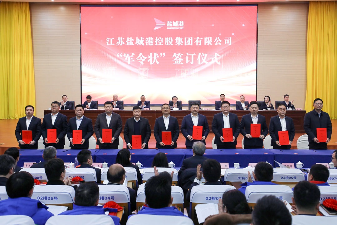 會議宣讀了關(guān)于表彰2024年度先進集體及個人的決定,并為獲獎代表進行頒獎;科技集團、大豐港集團、響水港集團等5家單位作表態(tài)發(fā)言。資本運營公司、大豐港集團、航運集團和集團投融資部等10單位和部門現(xiàn)場簽訂生產(chǎn)經(jīng)營軍令狀。