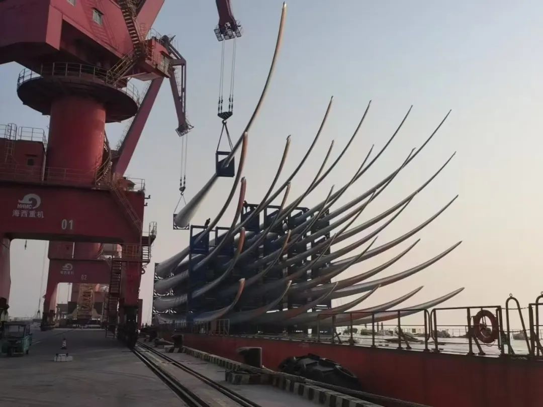 據(jù)悉,此次葉片出口項目是遠(yuǎn)景能源出口至印度坎德拉港EN-156項目的第5船,裝載量達(dá)到20套60片,射陽港區(qū)風(fēng)電公司與業(yè)主單位反復(fù)溝通并根據(jù)碼頭實際情況,連續(xù)攻克堆碼數(shù)據(jù)驗證、作業(yè)中雙機聯(lián)動半徑實驗與集港運輸數(shù)據(jù)可行性驗證等技術(shù)壁壘,確保作業(yè)方案科學(xué)有序。