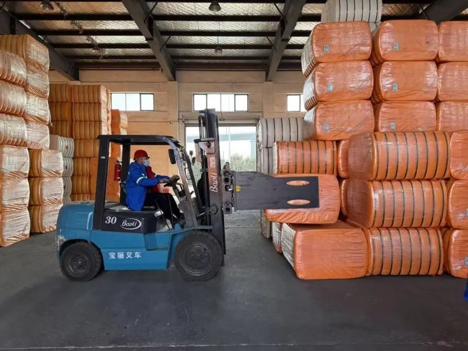 精準(zhǔn)操控叉車穿梭于橙色貨海之間