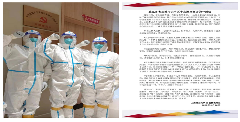 風(fēng)浪顯擔(dān)當(dāng),患難見真情。鹽城港先后兩次完成兄弟城市集中醫(yī)學(xué)觀察點任務(wù),在半島溫泉酒店攜手抗疫,同擔(dān)風(fēng)雨,共克時艱,守望相助。大家隔著口罩、防護服、屏幕、便簽紙相見,熟悉卻又素未謀面,但一次次問候,一句句叮囑,一聲聲感謝,都彌足珍貴,銘記于心。真誠換真心,隔離結(jié)束后,各類社交軟件的瘋狂點贊、一面面錦旗、一幅幅漫畫、一封封感謝信,傳遞的不僅僅是肯定,更是感激。