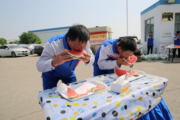 剛剛過去了小暑,大暑又匆忙到來,地表熱力值持續(xù)爆表,大豐港區(qū)一線職工不懼酷暑,堅守一線,與炎熱打上了一場持久戰(zhàn)。在這炎熱的酷暑時節(jié),鹽城港大豐港區(qū)滿載著“一家人、在一起、手足情、過日子”的深情關(guān)愛,給一線的職工帶來了一場西瓜的狂歡之旅,在大豐港區(qū)石化碼頭舉行“瓜分甜蜜清涼一夏”吃西瓜比賽,和順國貿(mào)、中南匯、油品化工碼頭、成品油一線職工代表參賽。