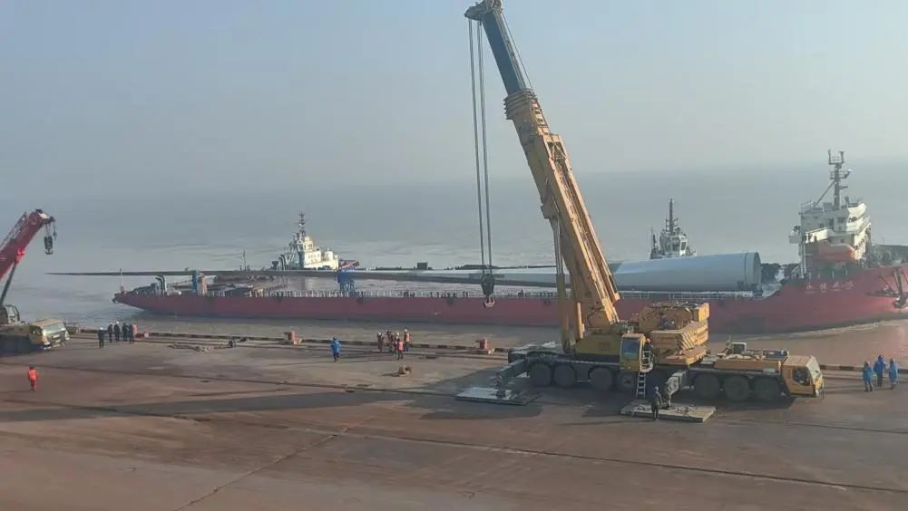 此次國內(nèi)最大葉片在鹽城港大豐港區(qū)的成功接卸,彰顯了大豐港區(qū)在大件貨物接卸方面的強大實力和專業(yè)水平。這不僅為我國風(fēng)電產(chǎn)業(yè)的發(fā)展提供了有力支撐,也為鹽城港大豐港區(qū)在新的一年里贏得了開門紅,為后續(xù)的業(yè)務(wù)拓展和發(fā)展奠定了堅實基礎(chǔ)。