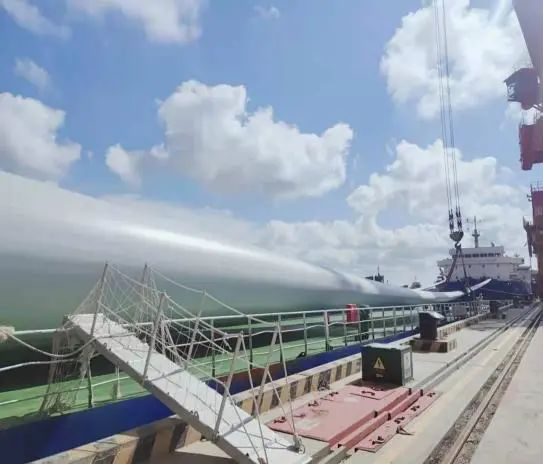 據(jù)了解,該型號風(fēng)電葉片對集港運(yùn)輸及裝船吊運(yùn)標(biāo)準(zhǔn)要求較高。射陽港區(qū)在認(rèn)真落實(shí)疫情防控各項(xiàng)措施的基礎(chǔ)上,與物流單位中悅大件公司密切配合,在裝卸前認(rèn)真做好各項(xiàng)準(zhǔn)備工作,制定詳細(xì)作業(yè)方案,選派精干力量組建作業(yè)專班,憑借高超的重大件吊裝技藝,僅用45分鐘便圓滿成功完成99米風(fēng)電葉片裝卸的平穩(wěn)裝船。優(yōu)質(zhì)高效的風(fēng)電設(shè)備裝船能力得到各方高度認(rèn)可和一致好評,再一次擦亮了射陽港區(qū)“風(fēng)電裝卸服務(wù)”優(yōu)質(zhì)品牌,以實(shí)際行動助力風(fēng)電產(chǎn)業(yè)的發(fā)展。