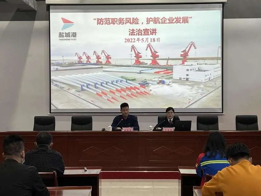 為進(jìn)一步增強(qiáng)港區(qū)干部職工的法紀(jì)觀念和廉潔從政意識(shí),提高防范風(fēng)險(xiǎn)能力,有效預(yù)防職務(wù)犯罪,5月18日上午,射陽(yáng)港區(qū)法務(wù)部邀請(qǐng)射陽(yáng)縣人民檢察院相關(guān)專家,為全體員工進(jìn)行了《防范職務(wù)風(fēng)險(xiǎn),護(hù)航企業(yè)發(fā)展》專題講座。嚴(yán)主任結(jié)合港口行業(yè)實(shí)際,從國(guó)有企業(yè)職務(wù)犯罪預(yù)防主體定位、國(guó)有企業(yè)職務(wù)犯罪罪名概述、國(guó)有企業(yè)職務(wù)犯罪案發(fā)原因分析、防范國(guó)有企業(yè)職務(wù)犯罪的對(duì)策及建議等四個(gè)方面進(jìn)行詳細(xì)講解,讓所有員工接受了一次深刻的法治教育。