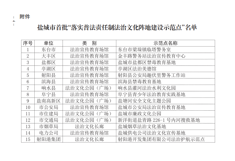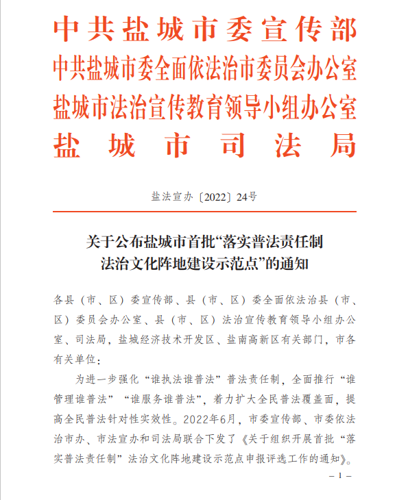 近期,由鹽城市委宣傳部、市委依法治市辦、市法宣辦、司法局4個(gè)部門單位發(fā)布關(guān)于公布鹽城市首批“落實(shí)普法責(zé)任制法治文化陣地建設(shè)示范點(diǎn)”的通知,江蘇鹽城港射陽港開發(fā)集團(tuán)有限公司榮獲相關(guān)稱號(hào)。