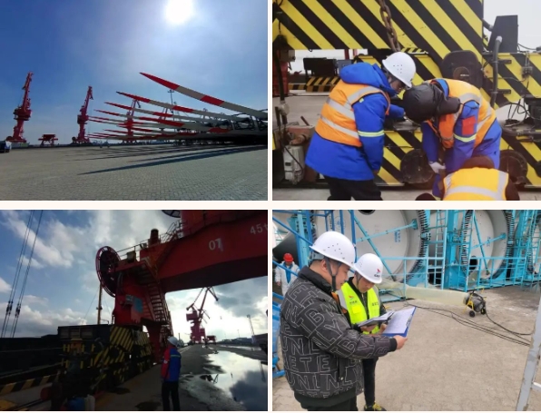 乍暖還寒的天氣,掩不住悄然開放的迎春花香漫過大件堆場,95后的巡查員正在研判著123米葉片堆碼安全間距?!扒岸藢R,仰角30°,符合要求,可以落鉤”,他和現(xiàn)場安全員溝通的聲音驚飛了棲息在高桿燈防撞桿上的白鷺;500米外的消防泵站檢修現(xiàn)場,消防維保員踩著管道內(nèi)清理出的沒過雨靴的淤泥,“通了、通了”興奮的高聲喊叫。