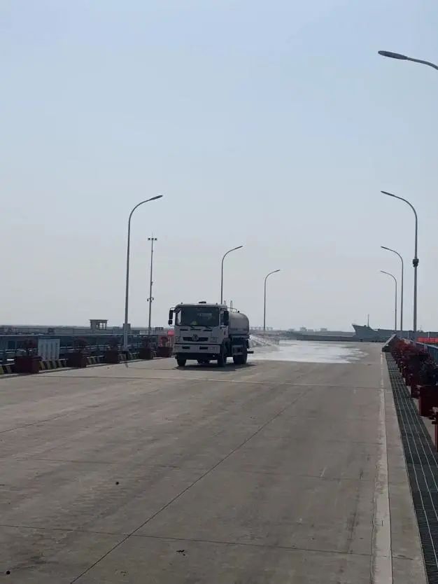 疫情形勢(shì)依然嚴(yán)峻,響水港區(qū)在抓好疫情防控的同時(shí)不放松綠色生態(tài)港口建設(shè)。為提高噴淋系統(tǒng)的噴射覆蓋區(qū)域,公司對(duì)噴淋設(shè)施的噴槍頭進(jìn)行改造,由原來的水柱噴射改為扇形噴射,改造完成之后將大幅度提高噴淋面積。此外,港區(qū)防風(fēng)網(wǎng)正在建設(shè)當(dāng)中,待防風(fēng)網(wǎng)建成投入使用后,將進(jìn)一步提高響水港區(qū)場(chǎng)地粉塵治理水平。