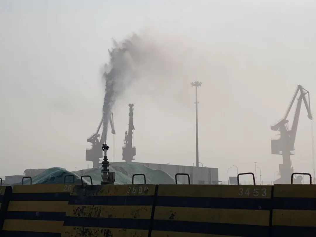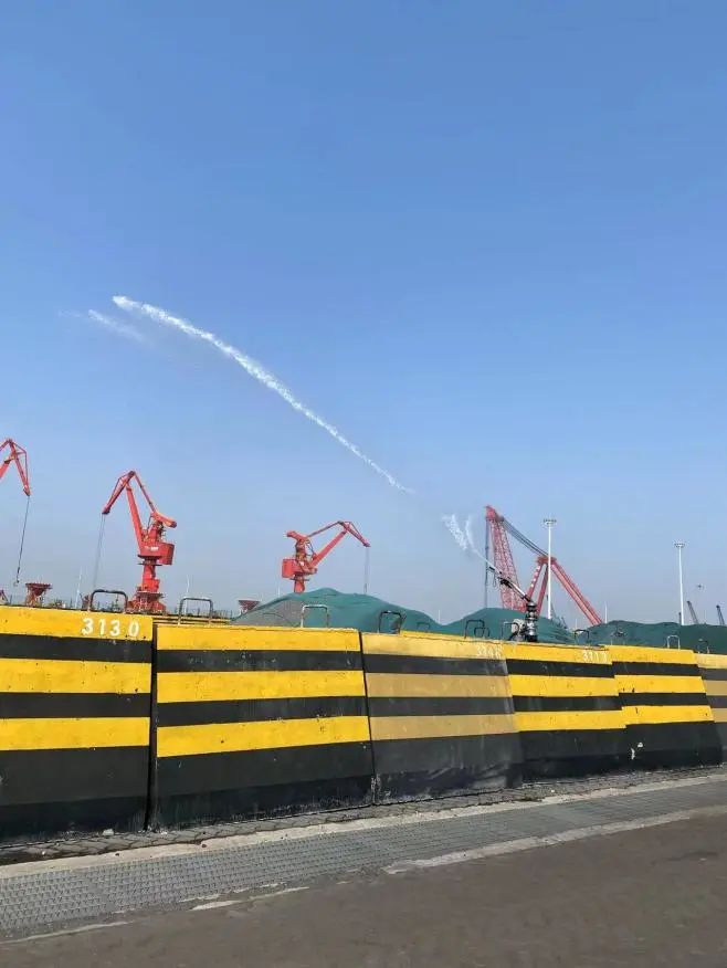 響水港區(qū)堆場(chǎng)建設(shè)有5套粉塵檢測(cè)系統(tǒng),60個(gè)場(chǎng)地噴淋設(shè)施,定時(shí)對(duì)貨堆進(jìn)行噴淋降塵。為規(guī)范公司日常管理,制定了《生產(chǎn)性粉塵綜合治理制度》,為堆場(chǎng)貨物進(jìn)行百分百苫蓋,并通過碼頭面、堆場(chǎng)、道路清掃及灑水等措施減少揚(yáng)塵。