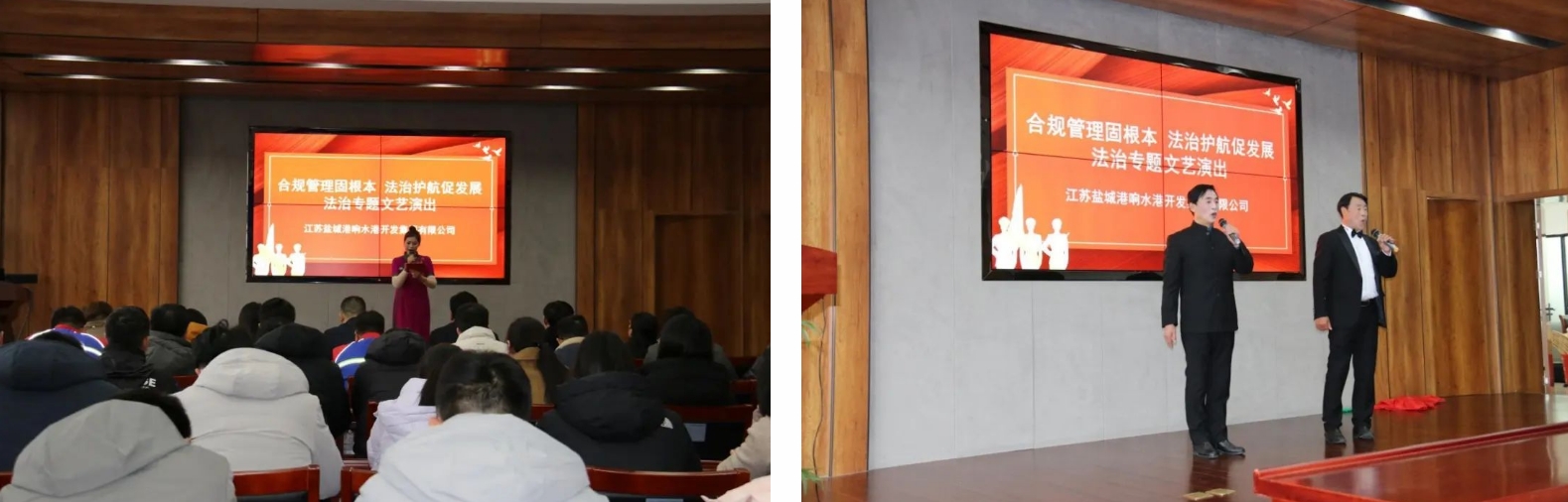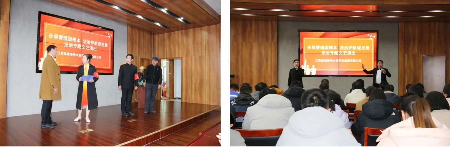 為全面落實“合規(guī)管理年”工作部署,進(jìn)一步增強全體干部職工的合規(guī)意識、法治意識、規(guī)矩意識,近日,響水港區(qū)邀請響水縣總工會、響水縣曲藝協(xié)會,聯(lián)合開展“凝心鑄魂跟黨走 團(tuán)結(jié)奮斗新征程”系列文藝匯演——法治主題專場。