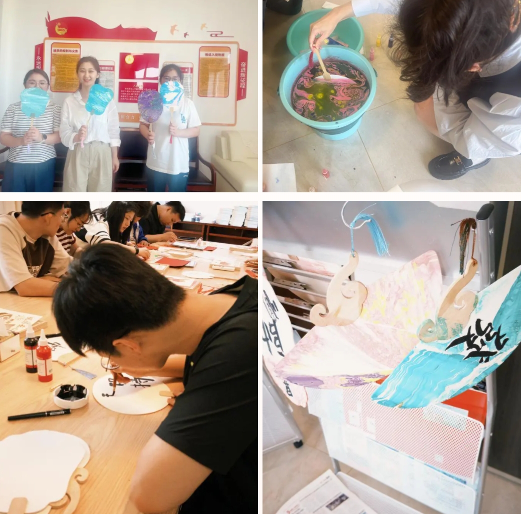 為青年們講述了漆扇的悠久歷史與在華夏藝術(shù)殿堂中璀璨奪目的地位,示范了漆扇制作那繁復(fù)而精妙的步驟,從選材到上漆,每一步都透露著對美的極致追求?;顒又?,青年們充分發(fā)揮創(chuàng)意與想象,將精心調(diào)配的顏料緩緩滴入清澈的水中,隨后以輕盈的手法攪動水面,顏料在水中緩緩擴散,形成一幅幅流動的畫卷,或清新淡雅,或濃墨重彩,那流云般變幻莫測的紋理,是自然與藝術(shù)的完美邂逅,更是青年們傳達著對祖國的愛意。