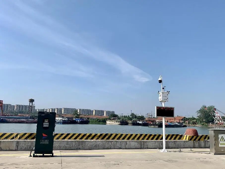水上服務區(qū)岸線綠色能源充電樁、粉塵監(jiān)測儀。