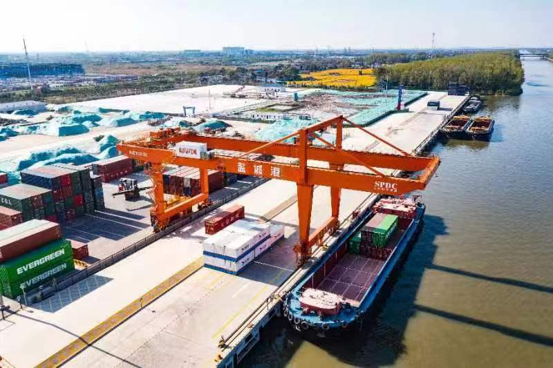 鹽城港是江蘇沿海中部唯一出海通道,也是淮河生態(tài)經(jīng)濟(jì)帶的出海門(mén)戶。陸港集團(tuán)圍繞“內(nèi)河港口網(wǎng)絡(luò)化、河海聯(lián)運(yùn)一體化”發(fā)展總體要求,積極構(gòu)建規(guī)劃科學(xué)、布局合理、功能完備、銜接順暢、綠色智慧的海河聯(lián)運(yùn)發(fā)展服務(wù)體系。10月份,“大豐港區(qū)—亭湖港區(qū)—南京龍?zhí)陡邸奔b箱班輪航線成功開(kāi)航,有效串聯(lián)南京與鹽城港口群,在滿足兩港腹地及淮河上游城市群產(chǎn)業(yè)發(fā)展需求的同時(shí),進(jìn)一步豐富了鹽城港在長(zhǎng)三角、長(zhǎng)江中上游、中西部?jī)?nèi)陸以及淮河流域的江河海多式聯(lián)運(yùn)“菜單”。同月,首批經(jīng)“滬鹽專線”運(yùn)抵鹽城港大豐港區(qū)的美棉項(xiàng)目貨,通過(guò)“海河聯(lián)運(yùn)”運(yùn)輸模式成功運(yùn)抵陸港集團(tuán)亭湖港區(qū),實(shí)現(xiàn)了海河聯(lián)運(yùn)集裝箱運(yùn)輸從零到一、從無(wú)到有的突破。海河聯(lián)運(yùn)業(yè)務(wù)的成功開(kāi)展,使得內(nèi)河與外海成為有機(jī)整體,讓海與河有效實(shí)現(xiàn)了“無(wú)縫銜接”,為陸港集團(tuán)積極打造海河聯(lián)運(yùn)示范中心、市域綜合集疏運(yùn)港口奠定了重要基礎(chǔ)。