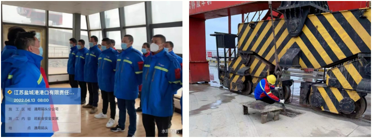 散貨碼頭分公司領(lǐng)導干部帶頭實施24小時值班制度,保障通訊暢通,及時掌握碼頭實時情況。維保人員全力將碼頭機械進行防風錨定,安全及設備人員復查確認,全面排查安全隱患,收回室外高空的積物,以防意外墜落,關(guān)閉好門窗,切斷機械設備電源,用強有力的手段應對惡劣天氣影響。