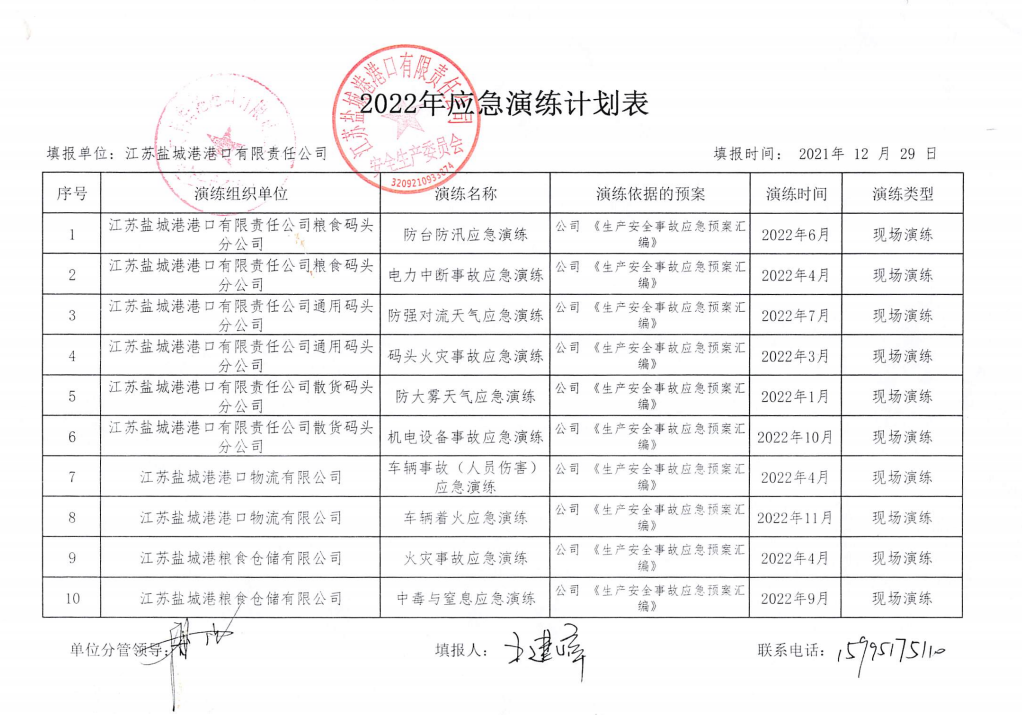 按照鹽城港集團(tuán)及上級(jí)主管部門安全管理要求,港口公司積極制定應(yīng)急演練方案,并嚴(yán)格按照演練方案時(shí)間節(jié)點(diǎn),大力組織開展各項(xiàng)應(yīng)急演練工作。