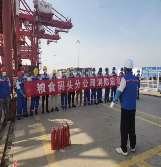 高溫?zé)崂顺掷m(xù),碼頭一線職工頭頂烈日、揮汗如雨、堅守崗位,經(jīng)受著高溫的“烤”驗,同時,高溫也使得碼頭作業(yè)現(xiàn)場的火災(zāi)風(fēng)險驟增,消防安全也面臨著更大壓力。為確保“三管三必須”安全生產(chǎn)工作落實(shí)落地,防患于未燃,近日,港口公司糧食碼頭分公司舉行了消防演練。