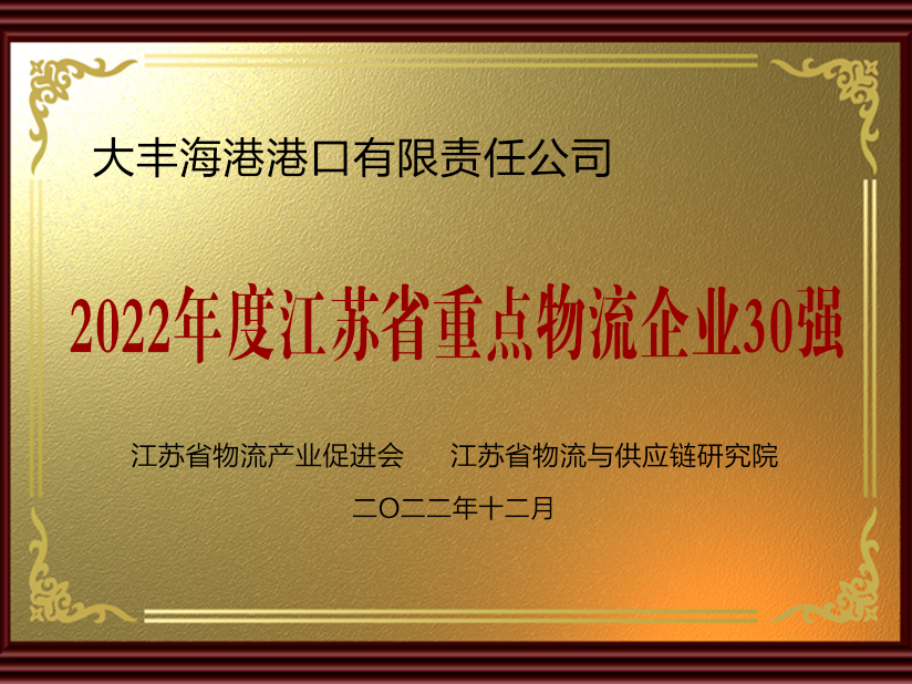 近日,省人力資源社會保障廳、省發(fā)展改革委、省物流產(chǎn)業(yè)促進會、省物流與供應鏈研究院在太倉市聯(lián)合舉辦“2022年度江蘇省重點物流企業(yè)30強”“全省物流行業(yè)先進集體和先進個人”“省級示范物流園區(qū)10強”等授牌儀式,鹽城港集團下屬單位大豐海港港口有限責任公司榮獲“2022年度江蘇省重點物流企業(yè)30強”榮譽表彰,港口公司第三作業(yè)區(qū)經(jīng)理劉志海榮獲“全省物流行業(yè)先進個人”榮譽表彰。