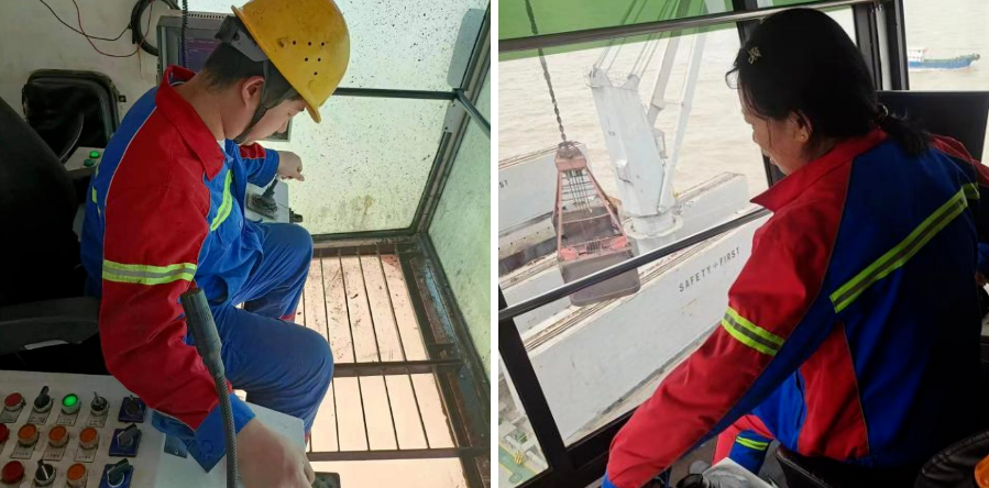 門(mén)機(jī)司機(jī)正在進(jìn)行卸船作業(yè)