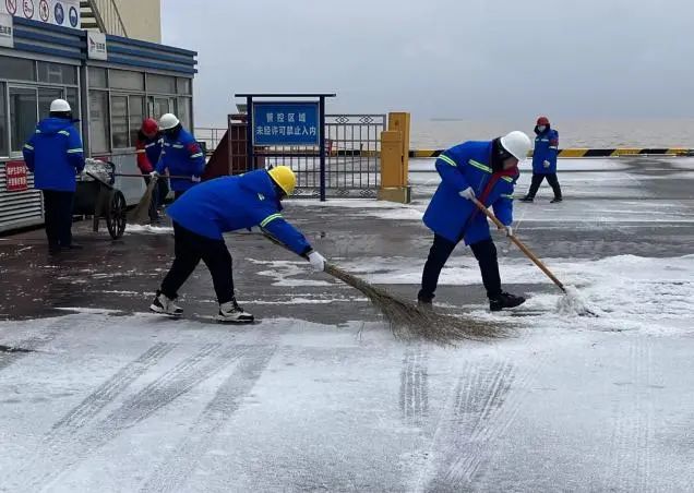 碼頭職工眾志成城 迎風戰(zhàn)雪