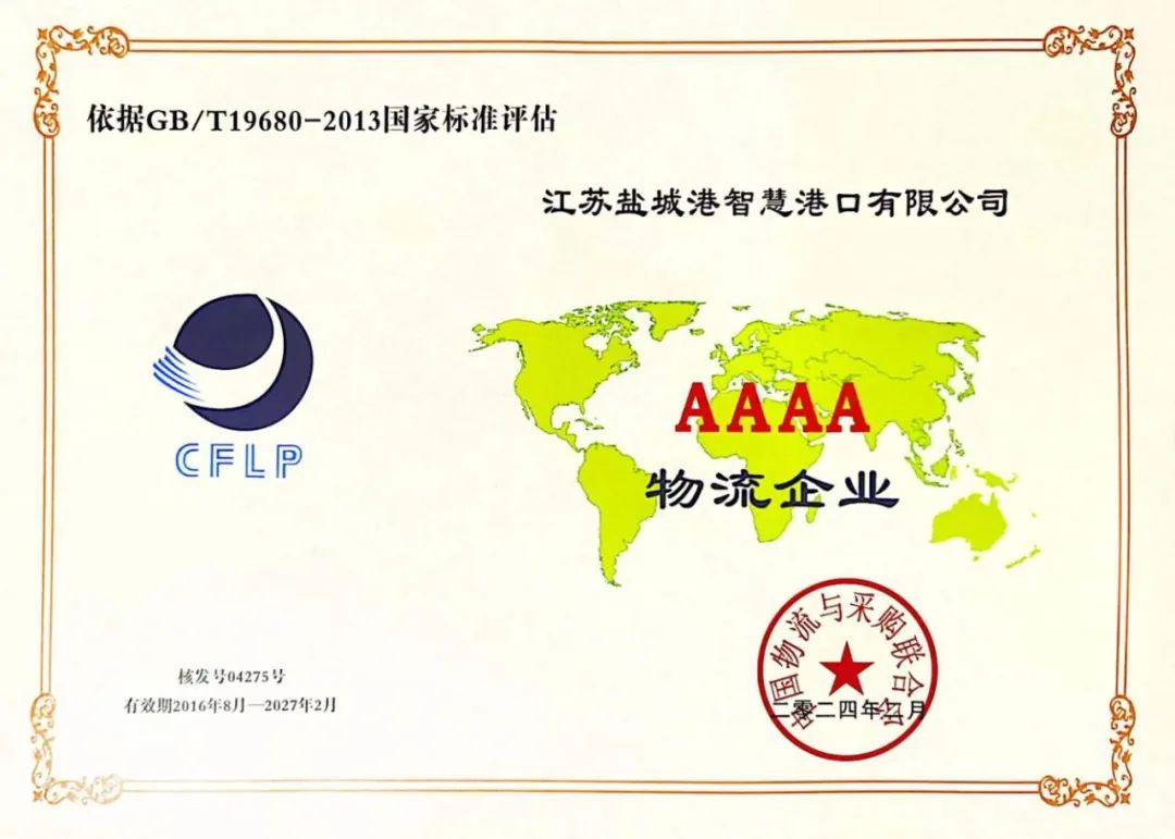 近日,由中國物流與采購聯(lián)合會主辦的“第七屆中國(合肥)物流與供應(yīng)鏈金融創(chuàng)新發(fā)展大會暨37屆物流企業(yè)授牌大會”在安徽合肥盛大召開,鹽城港智慧港口公司憑借出色的物流服務(wù)質(zhì)量和規(guī)范化的運營水平,被評為“AAAA級物流企業(yè)”,不僅標志著智慧港口公司在規(guī)范化、標準化運營方面已達到國家標準,物流服務(wù)模式得到了行業(yè)的高度認可,也為公司進一步發(fā)展和提升品牌影響力奠定了堅實的基礎(chǔ)。