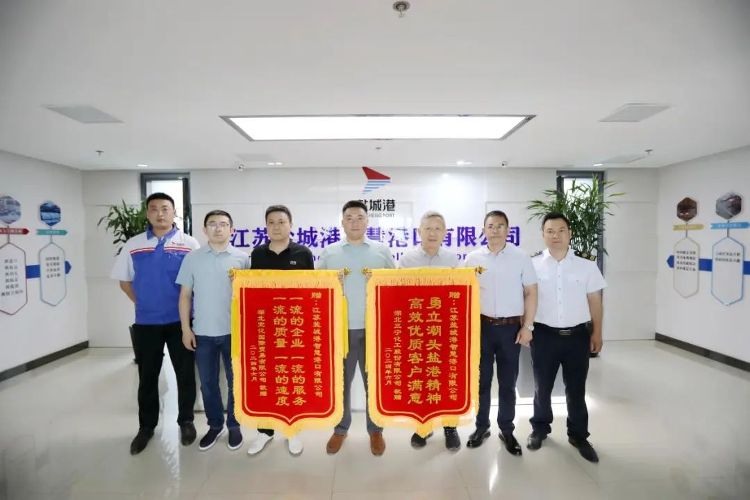 近日,鹽城港智慧港口公司收到湖北宜化國際貿(mào)易有限公司和湖北三寧化工股份有限公司贈送的兩面錦旗,“一流的企業(yè) 一流的服務 一流的質(zhì)量 一流的速度”“勇立潮頭鹽港精神 高效優(yōu)質(zhì)客戶滿意”,寥寥數(shù)字,充分表達了客戶對智慧港口公司在船舶作業(yè)期間優(yōu)質(zhì)服務的感激之情。