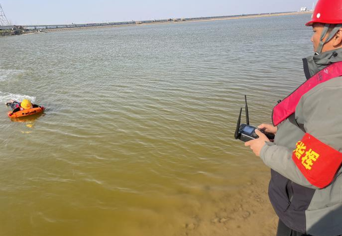 本次演練與港航勘測(cè)設(shè)計(jì)公司聯(lián)合進(jìn)行,模擬臨水測(cè)繪作業(yè)人員意外落水的突發(fā)事件。在預(yù)設(shè)救援力量不足的條件下,應(yīng)急指揮中心迅速啟動(dòng)三級(jí)響應(yīng)機(jī)制,組織應(yīng)急救援組、警戒保衛(wèi)組、后勤保障組、醫(yī)療救護(hù)組協(xié)同處置。其中,項(xiàng)目應(yīng)急物資庫(kù)配備的遙控救生船首次投入實(shí)戰(zhàn)應(yīng)用,成為本次演練的最大亮點(diǎn)。